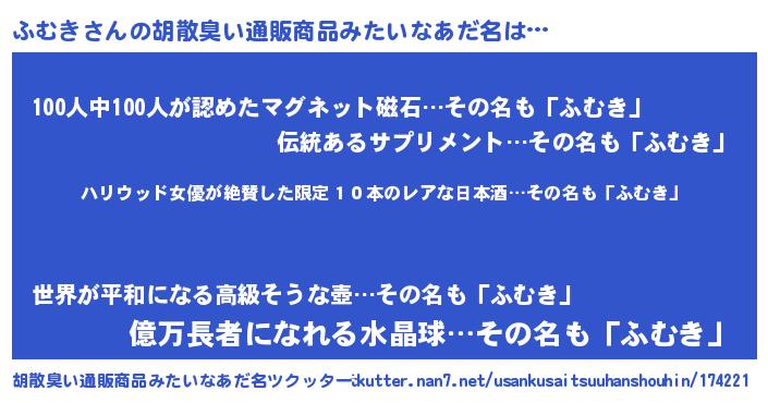 | ヘコむあだ名 | 『ふむにゅー』『ふむぷりん』『牛乳』 |