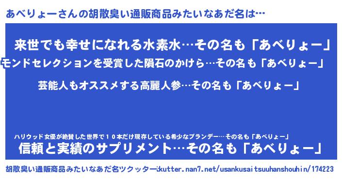 | ヘコむあだ名 | 『あべりょー(笑)』『あべお』 |
