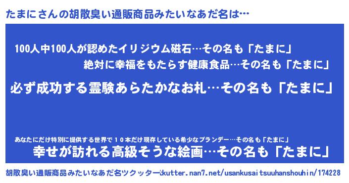 | ヒーロー風カッコイイあだ名 | 『スーパータマニ』『愛の使者たまに』 |