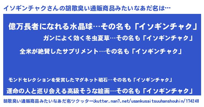 | ピコ太郎風あだ名 | 『イソ次郎』『イコ六郎』『ピイ太郎』 |