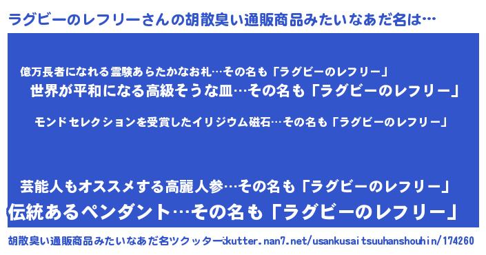 | ヒーロー風カッコイイあだ名 | 『慈愛の使者ラグビーのレフリー』 |