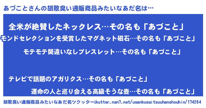| 男性向けラノベタイトル風あだ名 | 『転生したらあづことだった件』 |
