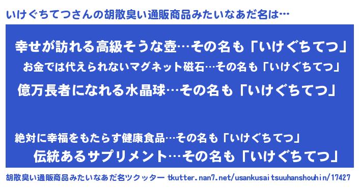 | 欧米人風あだ名 | 『マイケルいけぐちてつ』 |