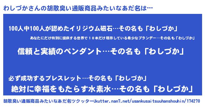 | 男性向けラノベタイトル風あだ名 | 『ワシヅカスレイヤー』 |