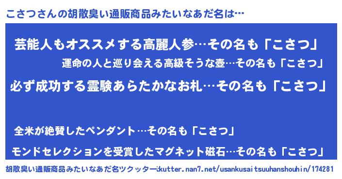 | 伝説のあだ名 | 『伝説のスナイパーこさつ』 |