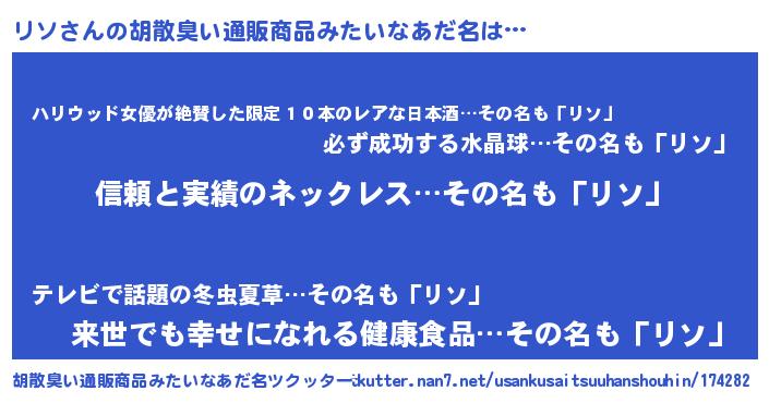 | 恥ずかしいあだ名 | 『リソリンリン』『リソちん』 |