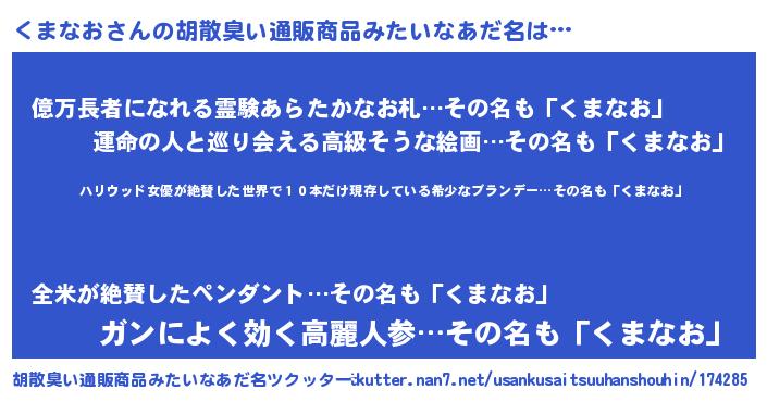 | 伝説のあだ名 | 『伝説のスナイパーくまなお』 |