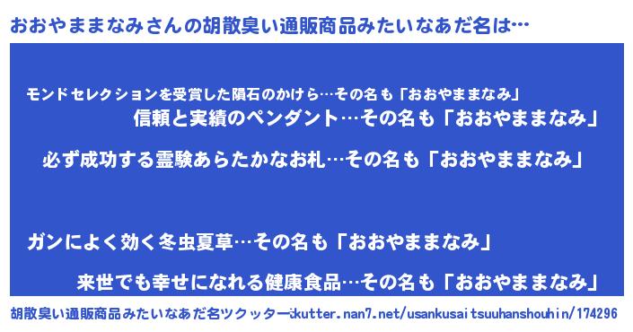 | 伝説のあだ名 | 『伝説のスナイパーおおやままなみ』 |