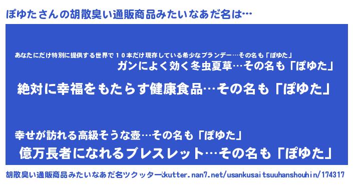 | ヘコむあだ名 | 『ぽゆた(爆)』『ぽゆもー』『ぽゆを』 |