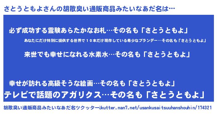 | 意味不明あだ名 | 『永久保存さとうともよ』 |