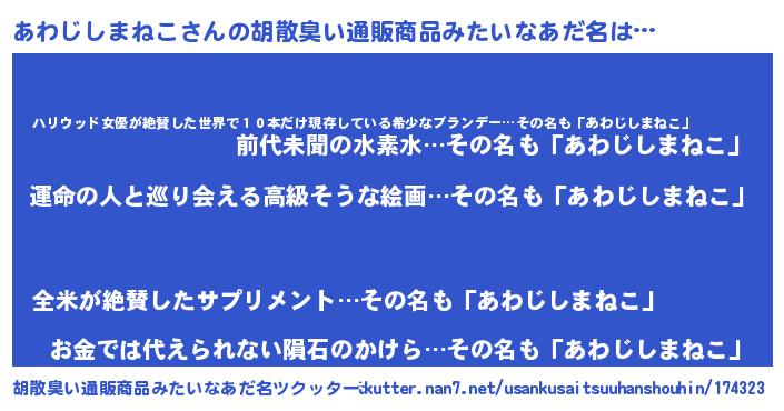 | 意味不明あだ名 | 『あわじしまねこフォーエバー』 |