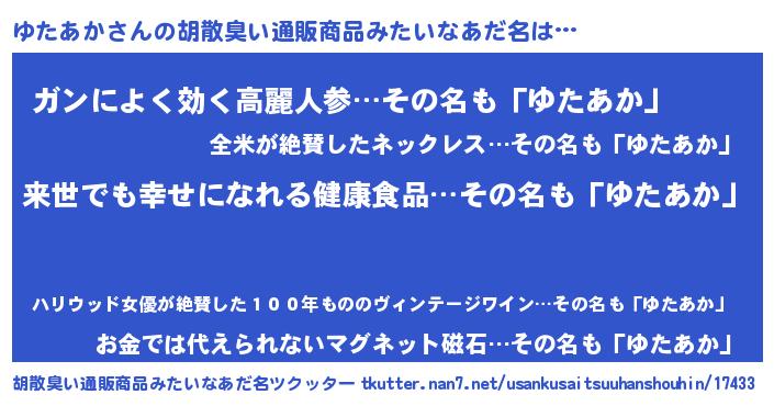 | 意味不明あだ名 | 『永久保存ゆたあか』『自称ゆたあか』 |
