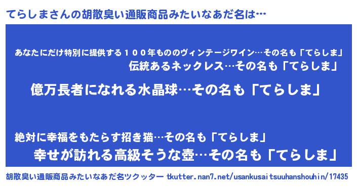 | 男性向けラノベタイトル風あだ名 | 『テラシマアートオンライン』 |