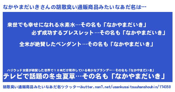 | ヘコむあだ名 | 『なかっちょ』『なかやまだいき(笑)』 |