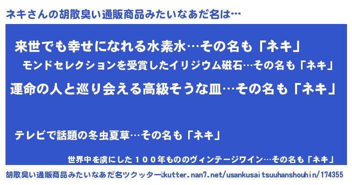 | ヒーロー風カッコイイあだ名 | 『ウルトラネキマン』『ネオネキ』 |