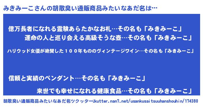 | ヘコむあだ名 | 『みきにー』『みきみーこ(遠い目)』 |