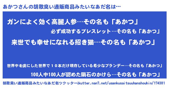 | ヒーロー風カッコイイあだ名 | 『ネオアカツ』『サイバー戦士アカツ』 |