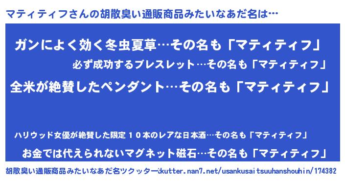| 女子向けラノベタイトル風あだ名 | 『マティティフ様がみてる』 |
