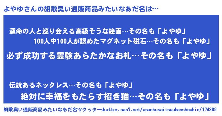 | 男性向けラノベタイトル風あだ名 | 『緋弾のヨヤユ』『はたらくよやゆさま!』 |