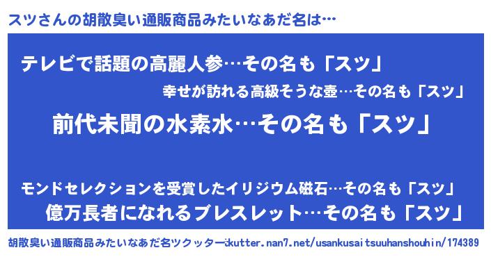 | 意味不明あだ名 | 『永久保存スツ』『自称スツ』 |