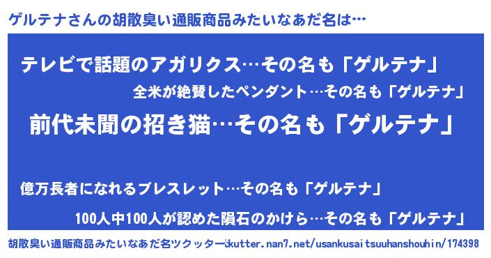 | 意味不明あだ名 | 『永久保存ゲルテナ』『自称ゲルテナ』 |