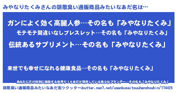 | 意味不明あだ名 | 『とにかく怪しいみやなりたくみ』 |
