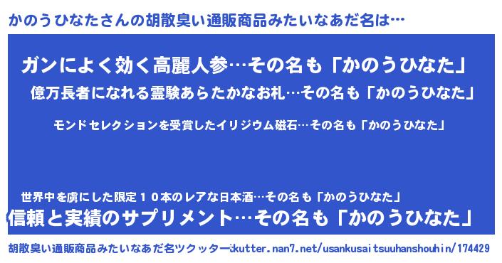 | ヒーロー風カッコイイあだ名 | 『慈愛の使者かのうひなた』 |
