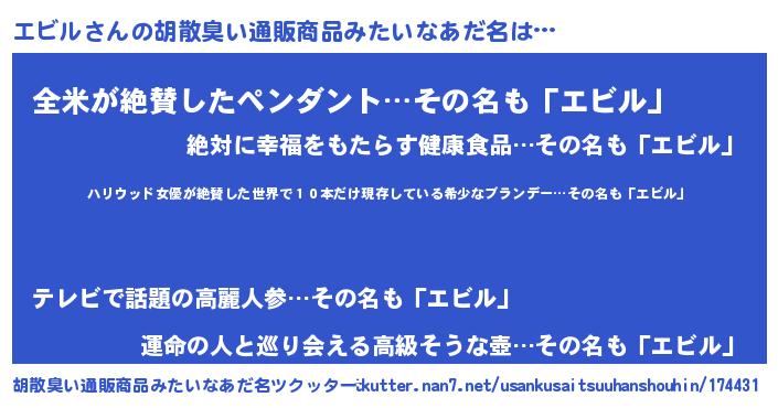 エビルさんの胡散臭い通販商品みたいなあだ名をツクッター!