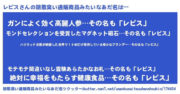 | 意味不明あだ名 | 『住所不定無職レピス(93歳)』『自称レピス』 |