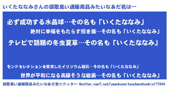 | 意味不明あだ名 | 『自称いくたななみ』 |