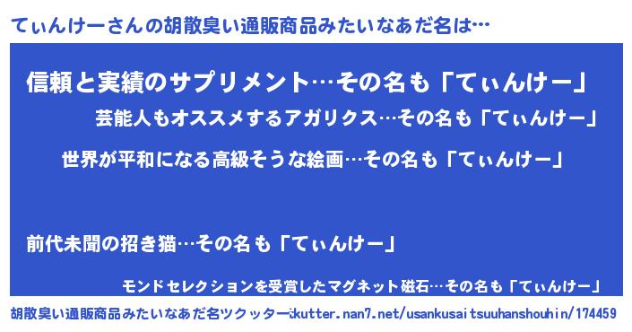 | 肩書あだ名 | 『てぃんけー総理大臣』『てぃんけー団長』 |