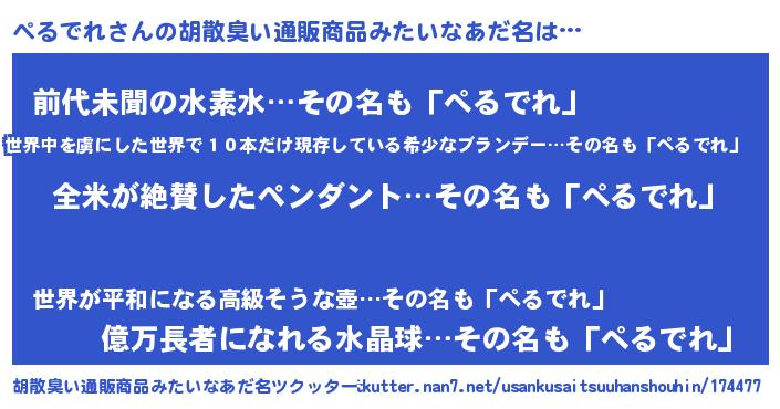 | 意味不明あだ名 | 『とにかく怪しいぺるでれ』 |