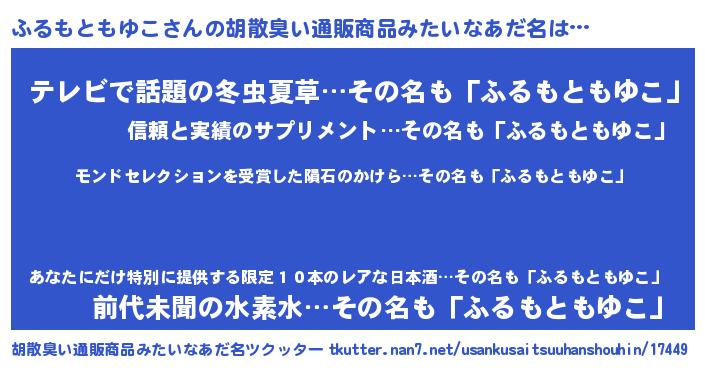 | 男性向けラノベタイトル風あだ名 | 『ノーゲーム・ノーフルモトモユコ』 |