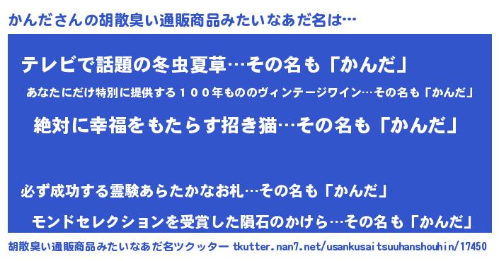 かんださんの胡散臭い通販商品みたいなあだ名をツクッター!