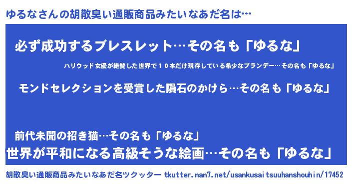 | 男性向けラノベタイトル風あだ名 | 『ノーゲーム・ノーユルナ』 |