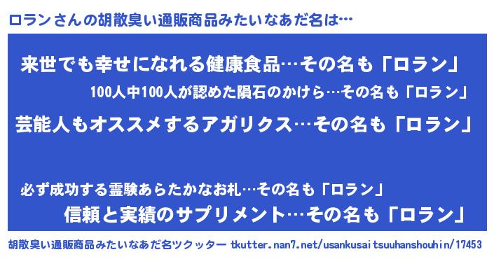 | ヘコむあだ名 | 『ロラン(笑)』『ロラお』『ロラもー』 |