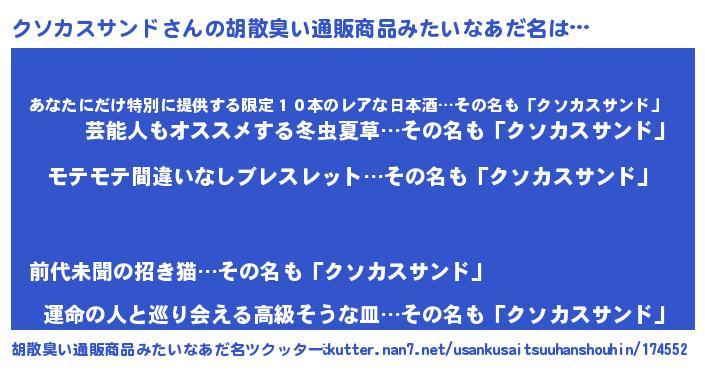 | 欧米人風あだ名 | 『トリンドルクソカスサンド』 |
