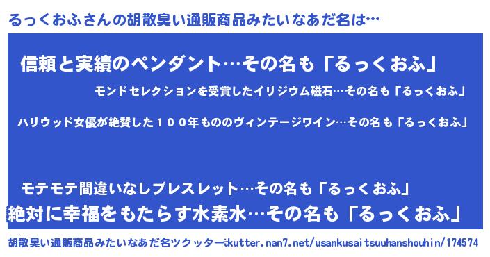 | ヘコむあだ名 | 『るっを』『るっくおふ(小並感)』 |