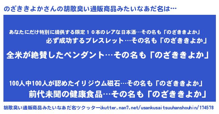 | 意味不明あだ名 | 『とにかく怪しいのざききよか』 |