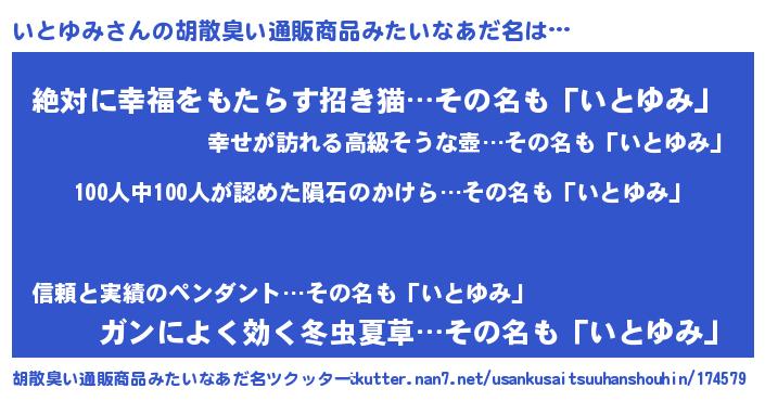 | ヒーロー風カッコイイあだ名 | 『正義の使者いとゆみ』『ネオイトユミ』 |