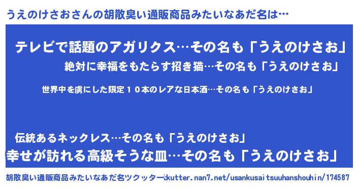 | 欧米人風あだ名 | 『うえのけさお・ステッグマイヤー』 |
