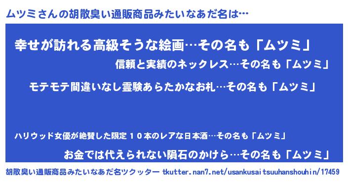| ポケモン風あだ名 | 『ムツチュウ』『ムツミダネ』 |