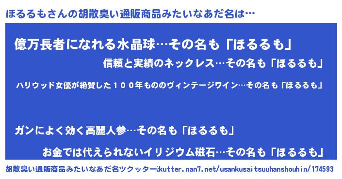 | 意味不明あだ名 | 『住所不定無職ほるるも(5歳)』 |