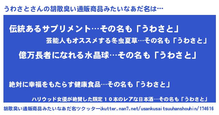 | 意味不明あだ名 | 『ペロリンうわさと』『自称うわさと』 |