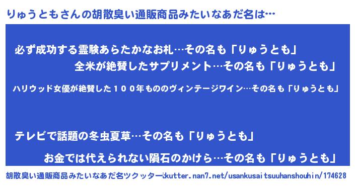 | 意味不明あだ名 | 『住所不定無職りゅうとも(3歳)』 |