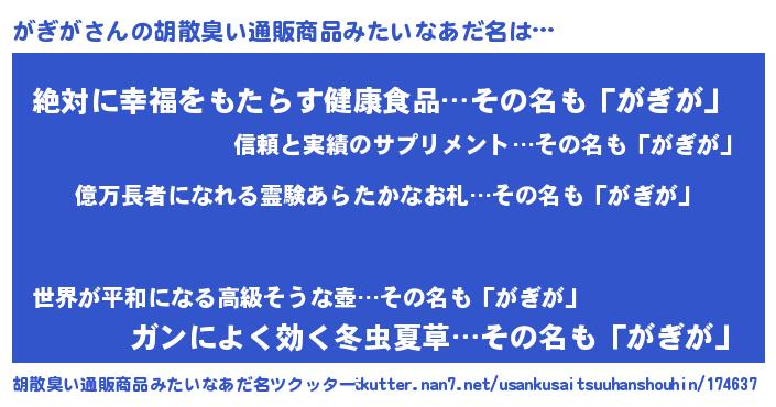 | ヘコむあだ名 | 『がぎもー』『がぎが(遠い目)』 |