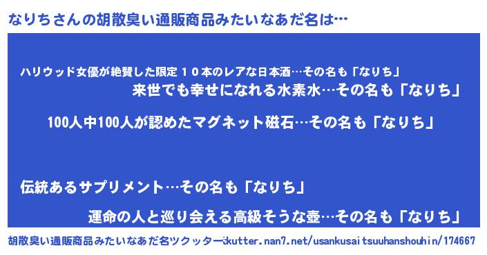 | 欧米人風あだ名 | 『ダニエルなりち』『ダレノガレなりち』 |