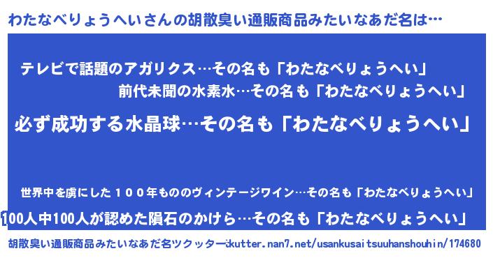 ヘコむあだ名 | 『わたにゅー』『わたなべりょうへい(笑)』 |