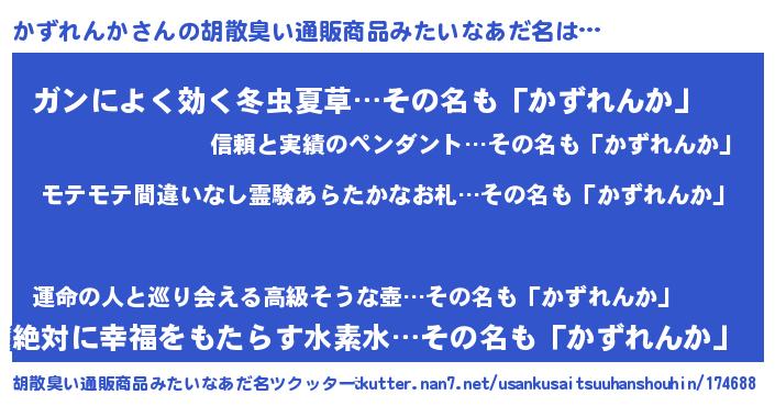 | 意味不明あだ名 | 『ペロリンかずれんか』『自称かずれんか』 |
