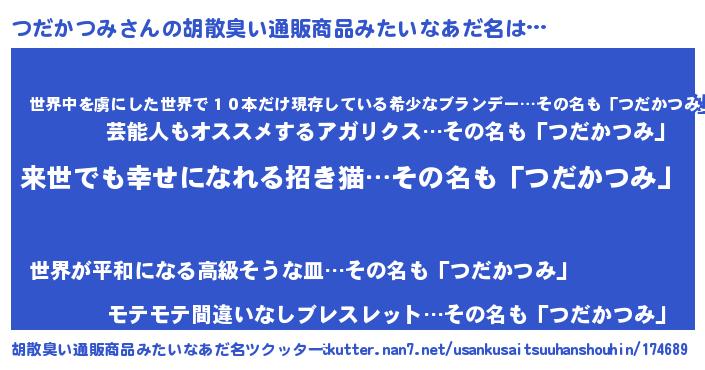 | ヘコむあだ名 | 『つだかつみ(笑)』『つだっふぃ~』 |